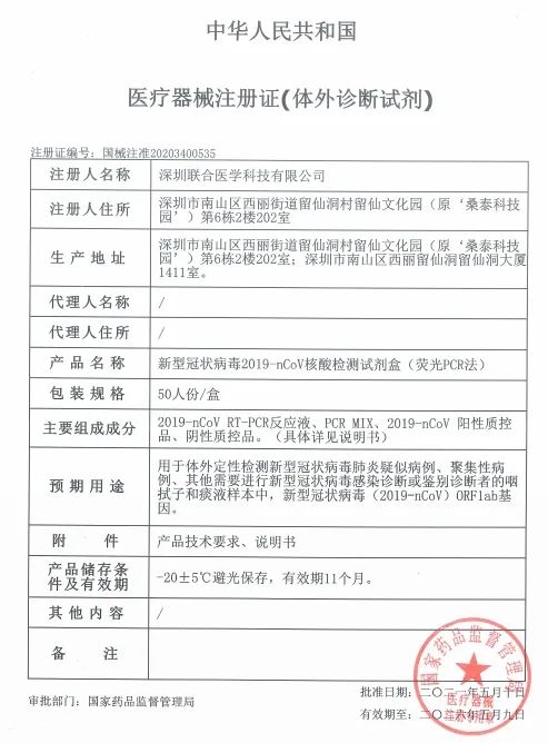 近日,9888拉斯维加斯新型冠状病毒(2019-nCoV)核酸检测试剂盒(荧光PCR法)已完成注册延续工作,试剂盒有效期在原有的6个月基础上延长至11个月,注册证有效期延长至5年。