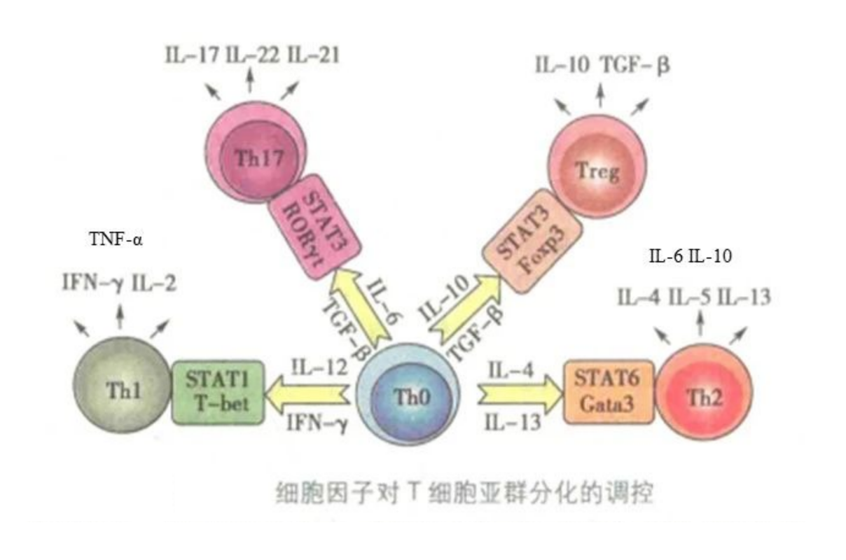 正常情况下,机体中Th1/Th2型细胞因子处于相对平衡的状态,其平衡与多种疾病的发生和发展密切相关。Th1及其分泌的细胞因子主要参与了细胞免疫介导的疾病:1型糖尿病,多发性硬化症,类风湿性关节炎等;Th2及其分泌的细胞因子主要参与了体液免疫介导的自身免疫病:如系统性红斑狼疮。